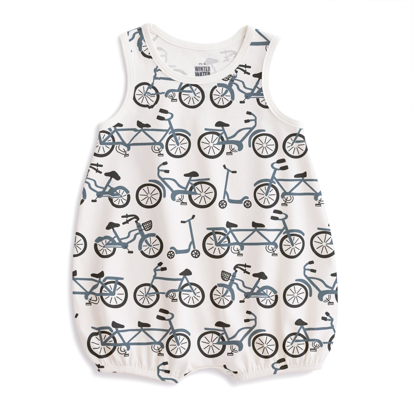 The sweetest little bubble romper in our Bikes print, our favorite mode of transportation!