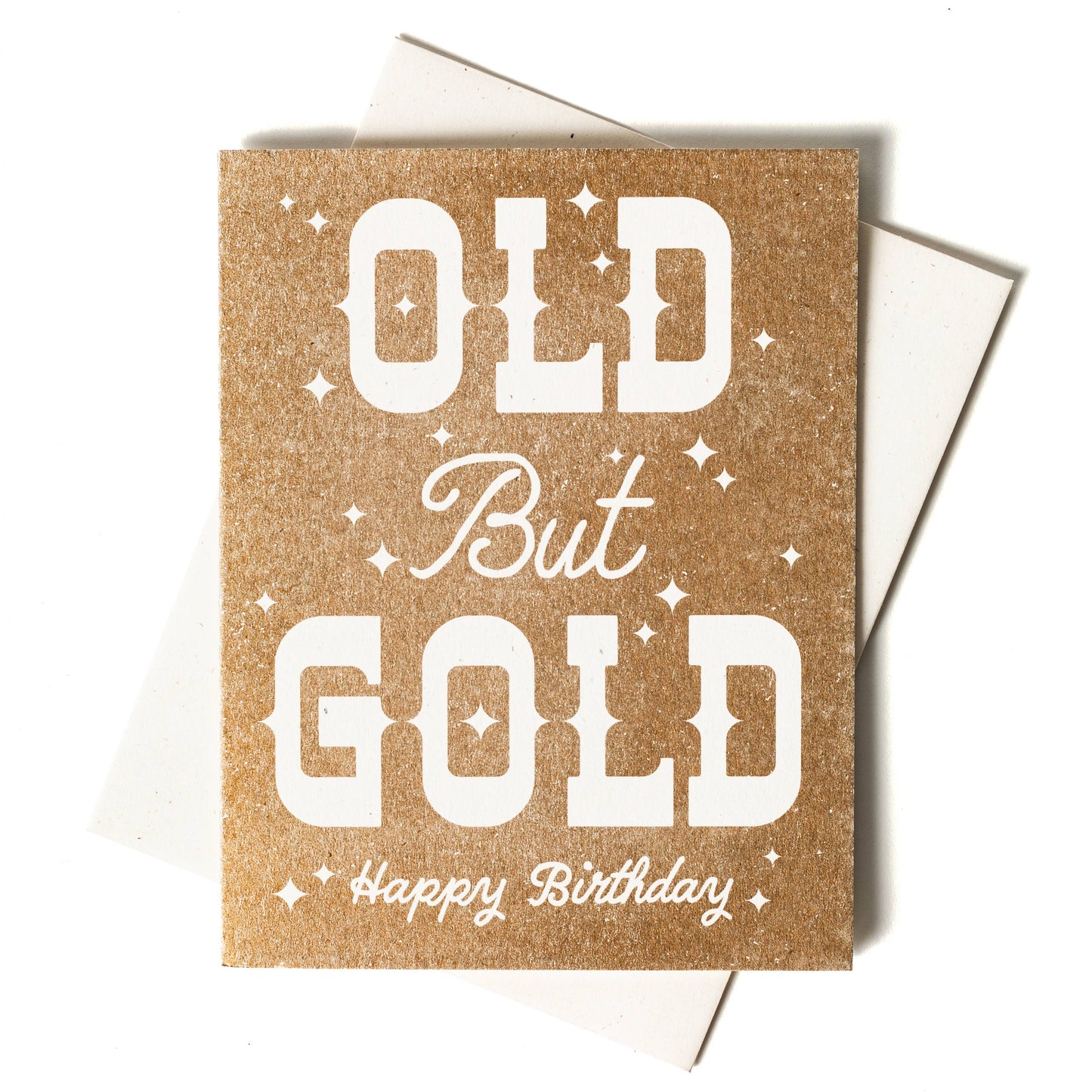 You may be old, but baby you are GOLD! Sparkle, it's your birthday. Risograph printed in metallic gold.
